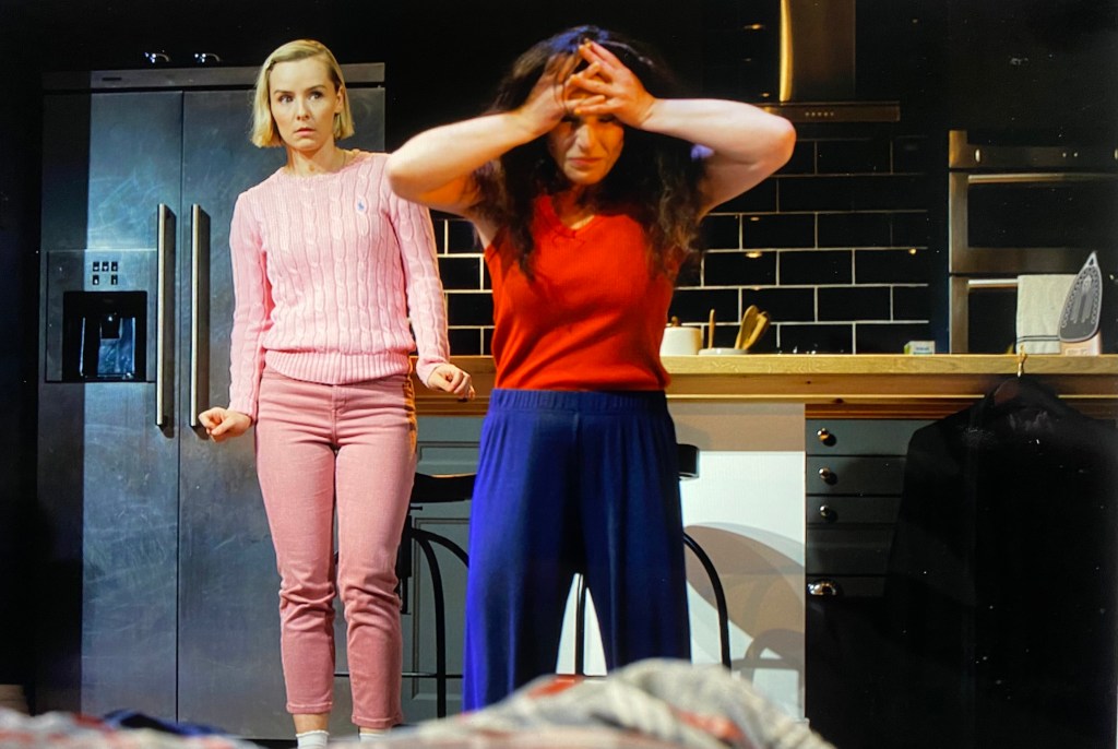 The play’s opening scene is slow; it takes a few minutes for it to register just how much of a horror Rosie Yadid’s Daphna is; her self-righteousness and her use of tactless, acid put-downs to bulldoze over her kin are a shocking joy. She is the Jewish matriarch of countless New York comedies, albeit at least 20 years younger than those stereotypes. “Pappy” left a family heirloom and she wants it, but Liam actually has it, paving the way for total warfare. Ashley Margolis’ Liam is a picture of suppressed rage until Daphna exits to the bathroom, when he lets rip with a marathon rant, one of the play’s great set pieces.